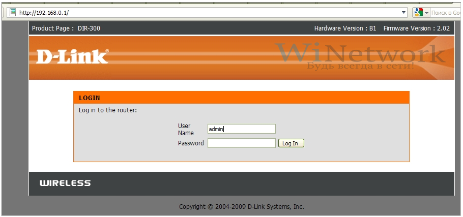 Приступаем к непосредственной настройке. Перед тем как настроить роутер D-Link Dir-300, нужно зайти в его панель управления:
