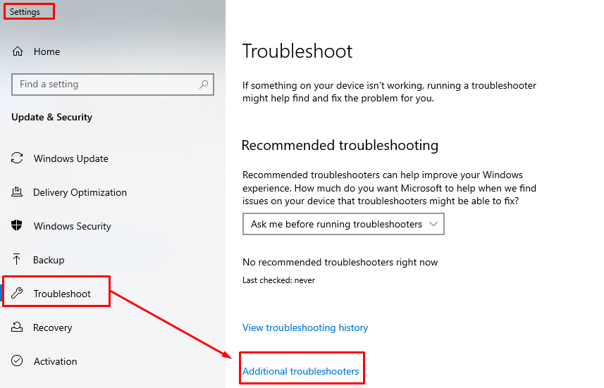 Шаг 1. Откройте вкладку «Устранение неполадок» в Windows 10, выбрав «Пуск» > «Обновление и безопасность» > «Устранение неполадок». Затем нажмите «Дополнительные средства устранения неполадок», чтобы проверить наличие проблем на вашем ноутбуке с Интернетом: