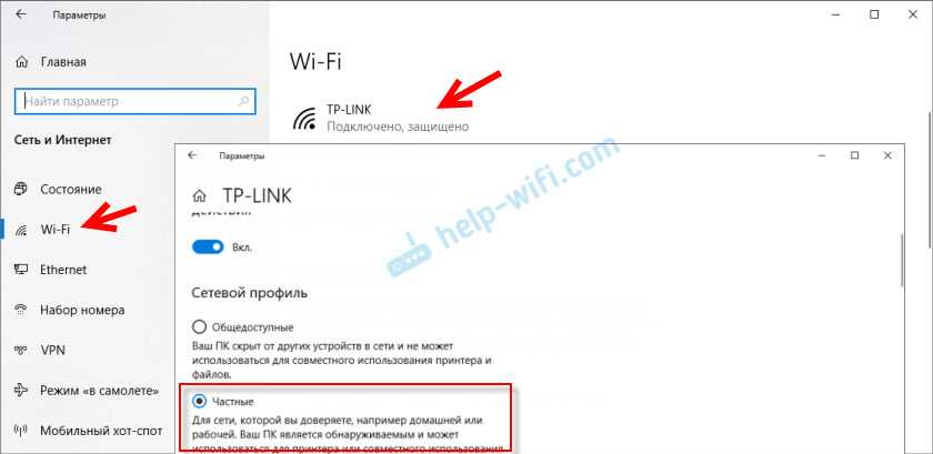 При подключении к роутеру по кабелю, или по Wi-Fi сети, Windows 10 присваивает подключению сетевой профиль: «Общедоступные» или «Частные». Здесь все просто. «Общедоступные» – это когда компьютер подключен к общедоступной, чужой сети. Например, где-то в кафе, отеле, у знакомых дома и т. д. «Частные» – это подключение к домашней сети. Этот профиль желательно устанавливать только в том случае, когда вы подключены к своей сети (к своему роутеру, который надежно защищен. Смотрите статью максимальная защита Wi-Fi сети и роутера от других пользователей и взлома) . В зависимости от выбранного профиля, меняются некоторые настройки общего доступа и брандмауэра.