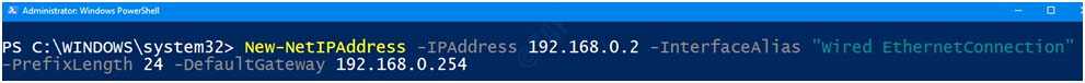 Чтобы задать статический IP-адрес, мы можем использовать командлет «New-NetIP address» следующим образом: