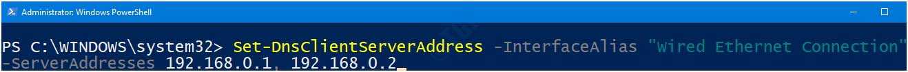 -ServerAddresses 192.168.0.1, 192.168.0.2