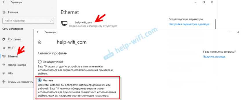 Для настройки локальной сети я рекомендую для Ethernet или Wi-Fi подключения установить сетевой профиль «Частные». Ну и соответственно открывать общий доступ к файлам только в тех сетях, которым вы доверяете (которые вы контролируете) . На тему смены сетевого профиля я уже писал подробную инструкцию: домашняя (частная) и общественная (общедоступная) сеть Windows 10.