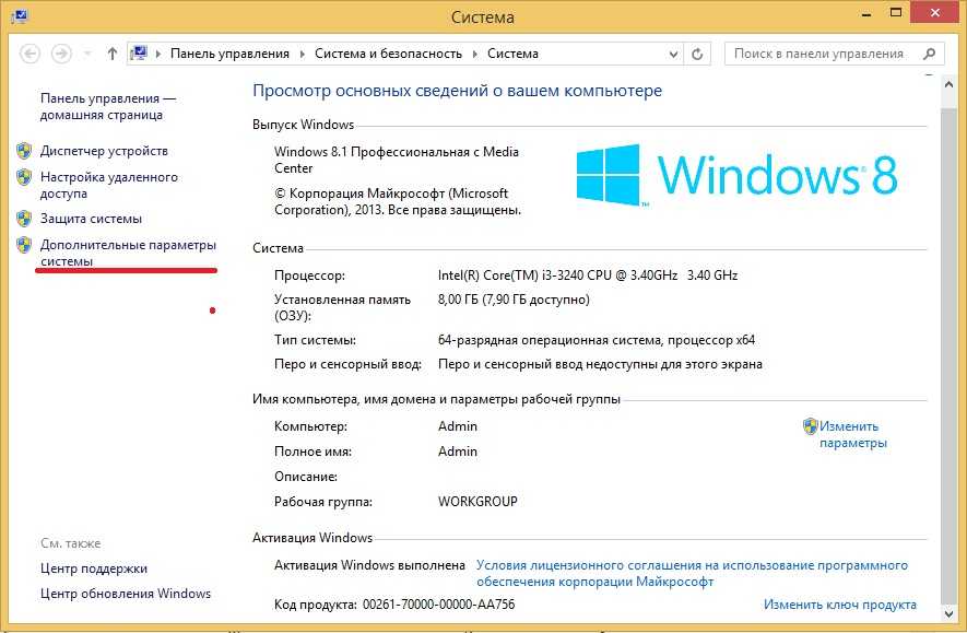 Откроется окошки Система в нем нужно выбрать пункт Дополнительные параметры системы.