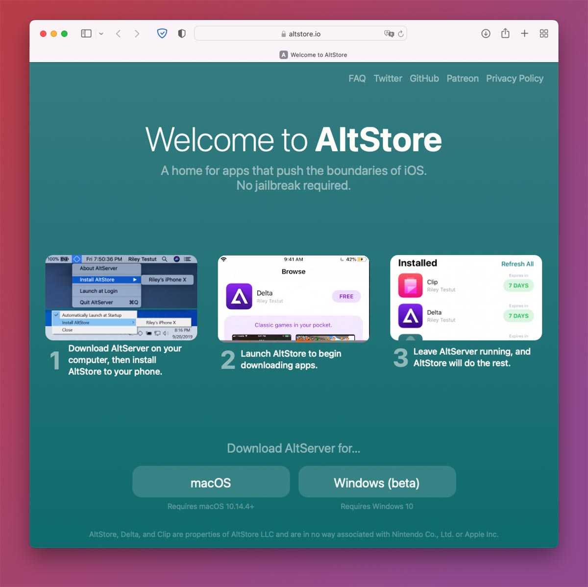 Скачайте и установите AltServer на Mac или Windows-ПК с сайта разработчиков.