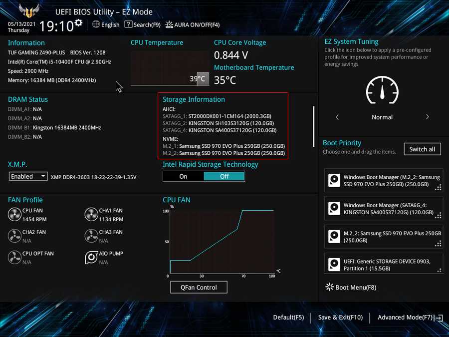 Шаг 1. Проверка видимости физического носителя в BIOS: