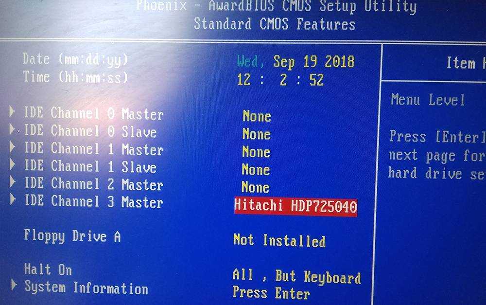 Затем выбрать меню «Standard CMOS Features», или «Main». Там вы увидите жесткий диск.