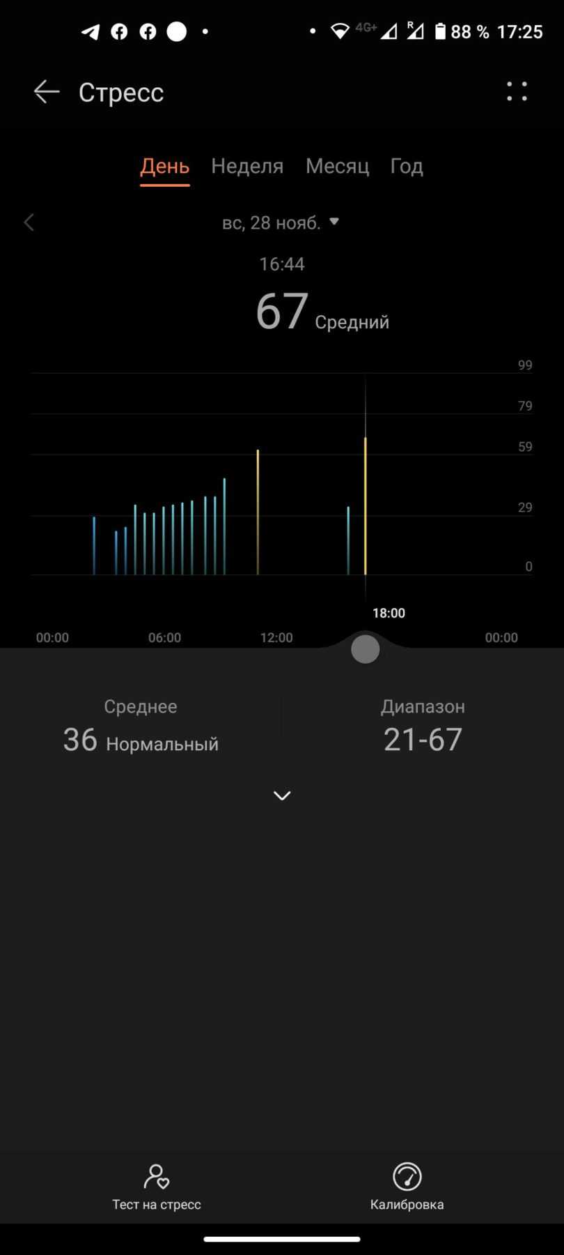 Еще одна функция осталась для нас загадкой — измерение температуры. Показания при 34°C сначала заставили нас усомниться в точности измерений. Оказалось, что речь шла о температуре кожи, а не тела. Температура запястья должна быть в диапазоне 33,5-34,5°C. Однако до сих пор неясно, что делать, если температура превышает 35. Стоит ли мне беспокоиться? Мой график на сегодня выглядит следующим образом Угадай, когда я выхожу на улицу?