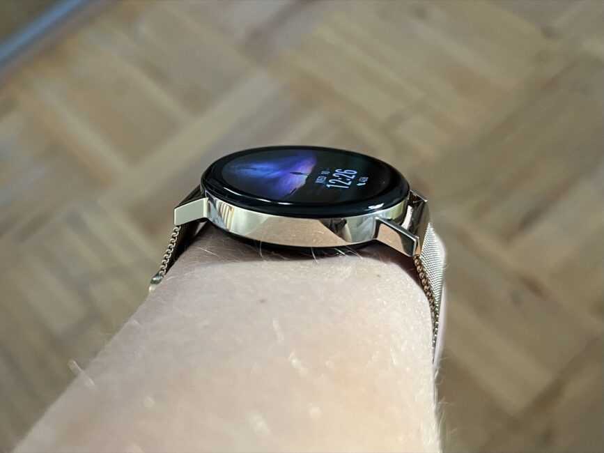 Дисплей тот же, что у флагманской модели Watch 3. Рамки относительно небольшие. Матрица качественная — AMOLED. Диагональ — 1,32 или 1,43 дюйма, разрешение в обоих случаях 466×466 точек. Яркость высокая — до 800 нит, так что вы увидите изображение на часах даже под яркими солнечными лучами. Автояркость работает четко, вопросов нет.