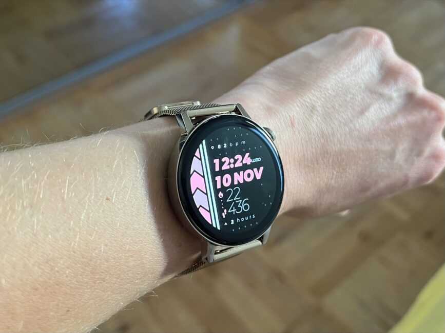 Упрощение в сравнении с Huawei Watch 3 – нет полноценного режима Always-on-Display (когда циферблаты адаптируются под всегда активный экран). Надо поворачивать запястье на себя, чтобы экран активировался, и можно было увидеть время. Почему-то не нашла возможности постучать по экрану для его активации, в других часах это есть. В любом случае, Watch GT 3 еще можно «разбудить» нажатием любой из клавиш.