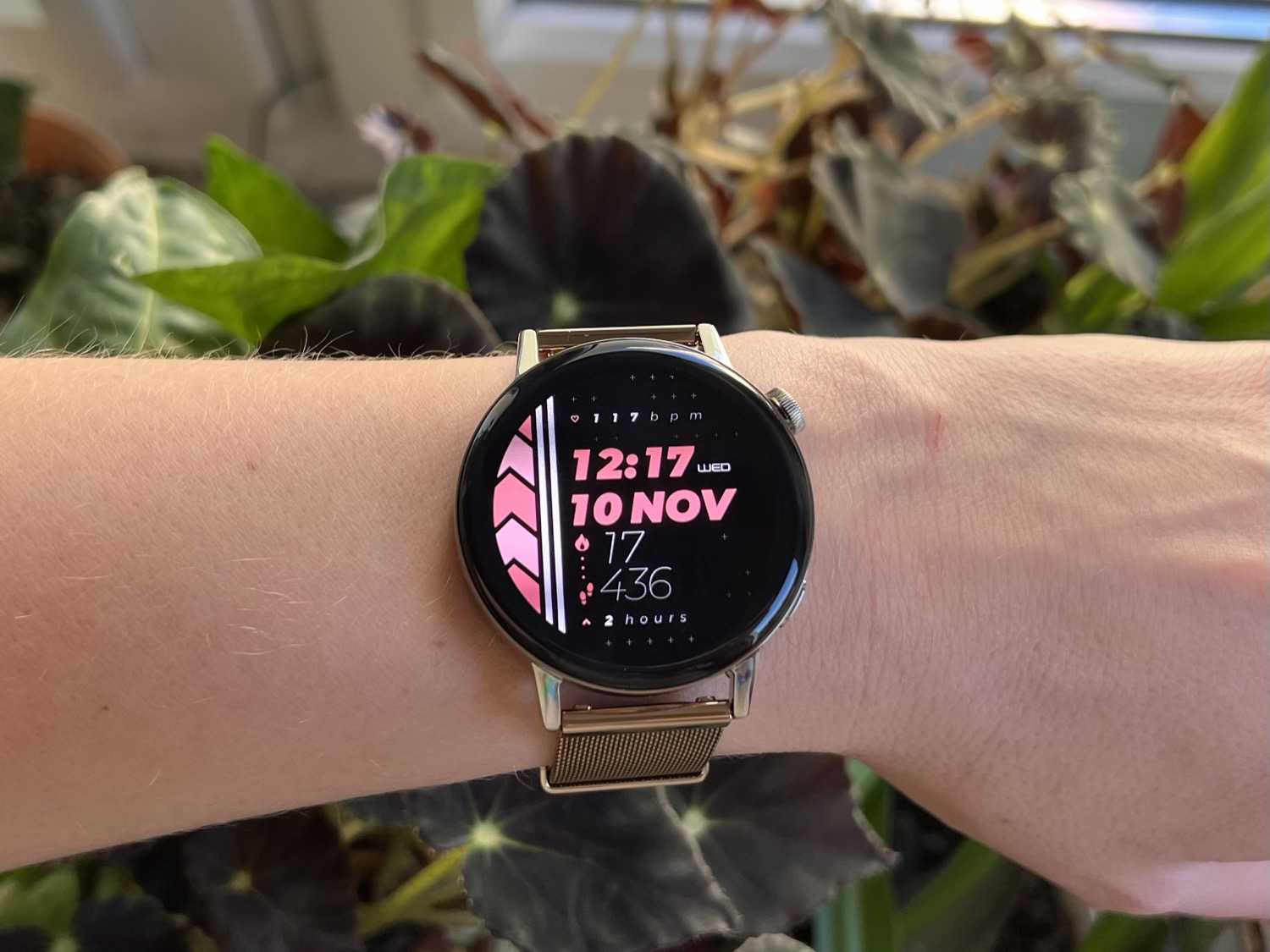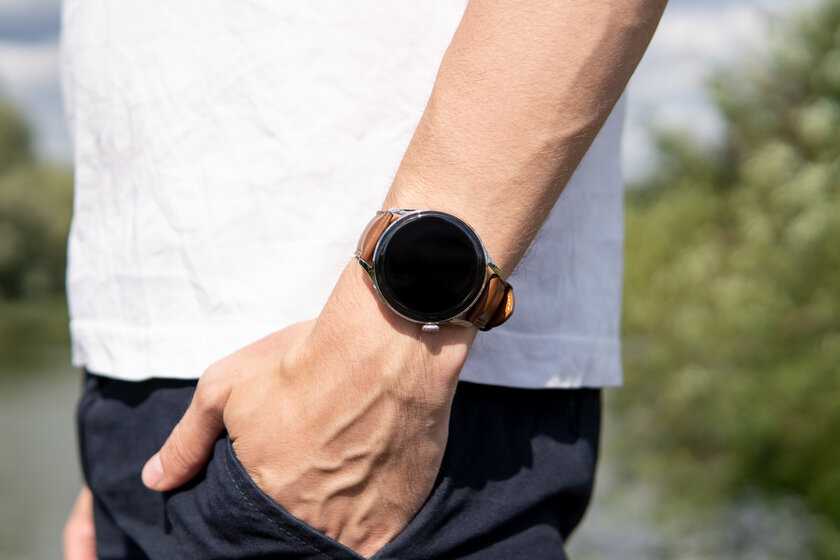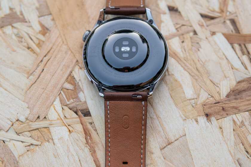 Часы GT 3 имеют корпус из нержавеющей стали, пластиковую заднюю панель и коричневый кожаный ремешок. Есть и другие варианты ремешков, в том числе ремешок из фторэластомера (также используемый в Withings ScanWatch ), который я бы порекомендовал, если вы планируете использовать Watch GT 3 для бега.