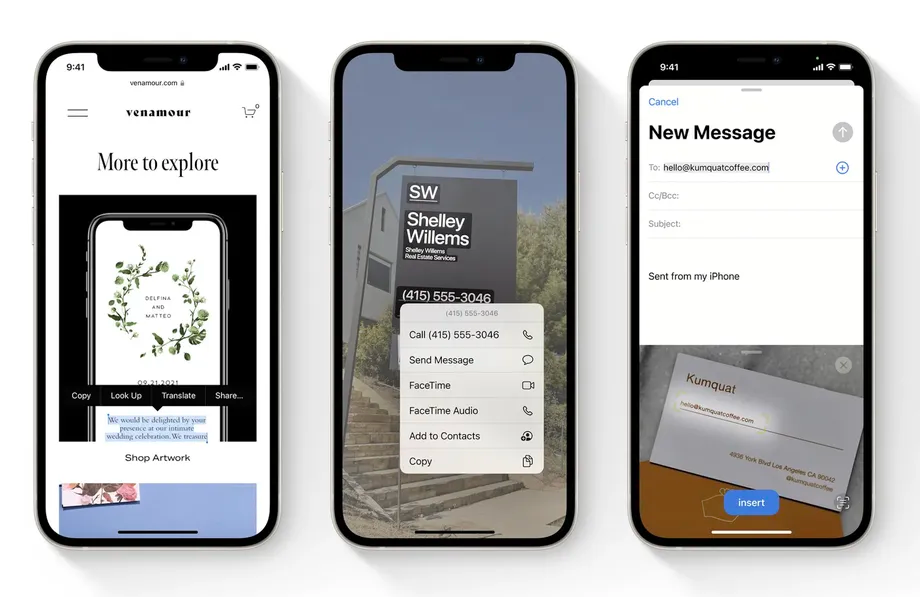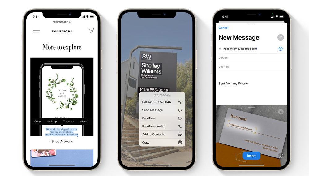 Live Text работает во всей экосистеме приложений Apple: в камере, в сохраненных фотографиях, в Safari. В принципе в большинстве случаях, где есть поле с текстом, вы можете нажать и удерживать на него, чтобы затем выбрать Live Text во всплывающем меню рядом с «копировать», «вставить» и т.д. Скопированный живой текст можно вставлять куда угодно: в сообщение, заметку, контакты и прочее. С технической точки зрения возможность скопировать текст с фотографии или картинки впечатляет. Но с практической вряд ли вы будете часто пользоваться этим в повседневности. Просто переписать чей-нибудь номер телефона с рекламного баннера гораздо проще и быстрее, чем наводить на него камеру, выделять и копировать.