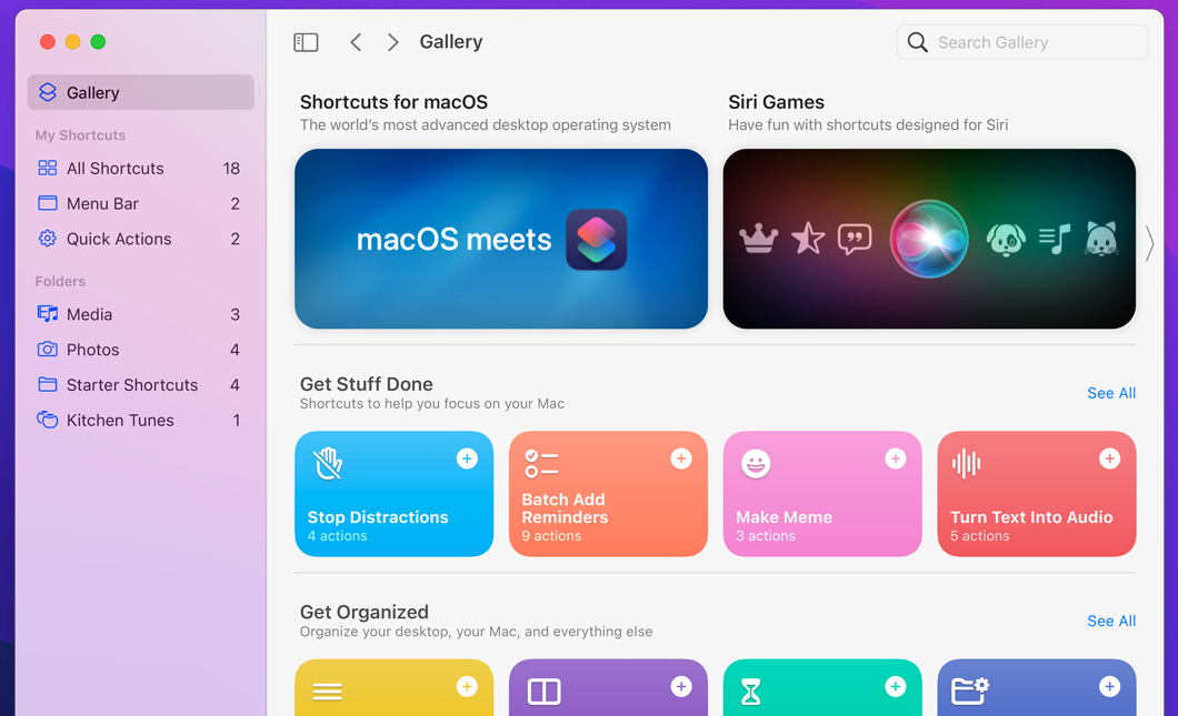 Shortcuts. Это приложение помогает создавать сценарии действий для повышения продуктивности. Например, вы можете в один клик или через голосовую команду запустить многозадачный режим и сразу открыть часто используемые приложения.