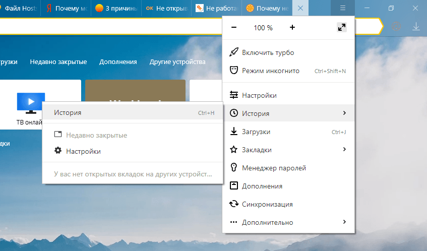Как быть, если социальная сеть не открывается только в определённом браузере, а пользоваться постоянно другим для запуска ресурса вы не хотите? Если вы «сёрфили» в интернете через какой-то определённый обозреватель, вероятно, в нём уже успело накопиться много «мусорных» файлов. Решение проблемы — очистка обозревателя. Рассмотрим, как её провести, на примере «Яндекс.Браузера»: