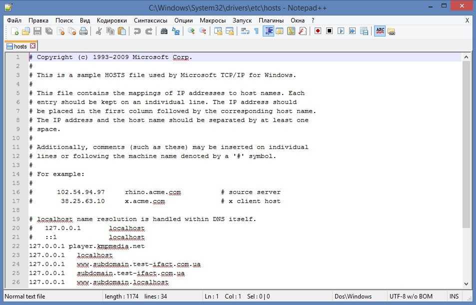 Для справки: хитрые создатели вирусов ухищряются вписать вредоносный код в Hosts-файл через множество пустых строк, чтобы без пролистывания полосы прокрутки вниз не было видно ничего подозрительного. Поэтому стоит внимательно осматривать документ, когда не работают одноклассники сегодня.