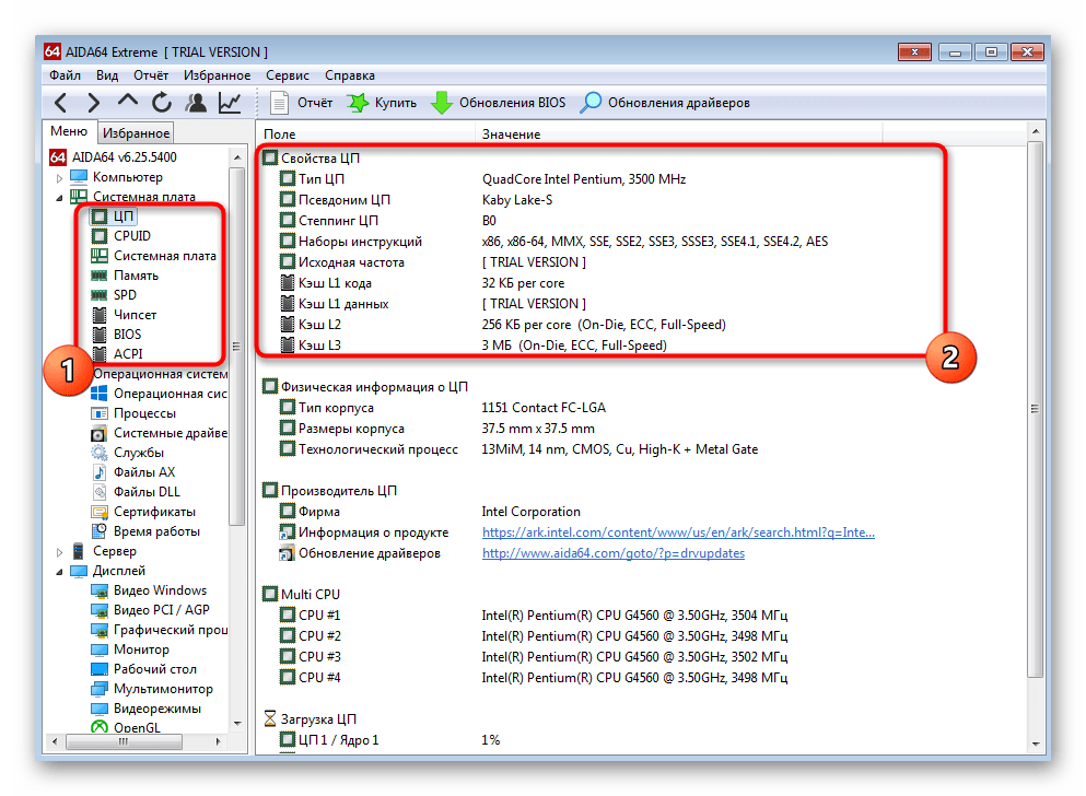 В завершение хотим рассказать о сторонних программах, которые позволяют быстро посмотреть все основные сведения о каждом компьютерном комплектующем. Такой софт бывает бесплатный и платный, а сейчас за пример мы возьмем пробную версию AIDA64. Ее будет вполне достаточно, чтобы показать общий принцип функционирования таких решений.