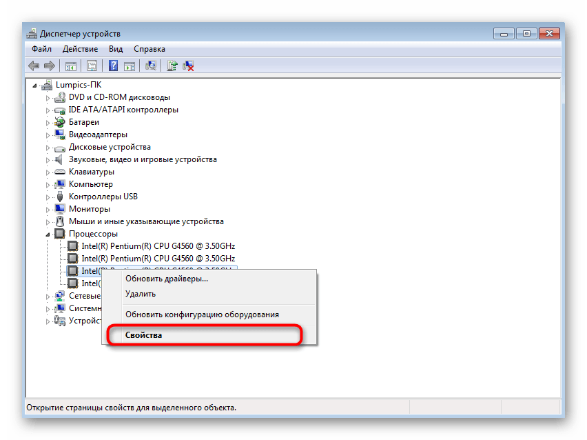 Щелкните по интересующей строке ПКМ и в контекстном меню выберите «Свойства», если хотите перейти к просмотру других сведений об оборудовании.