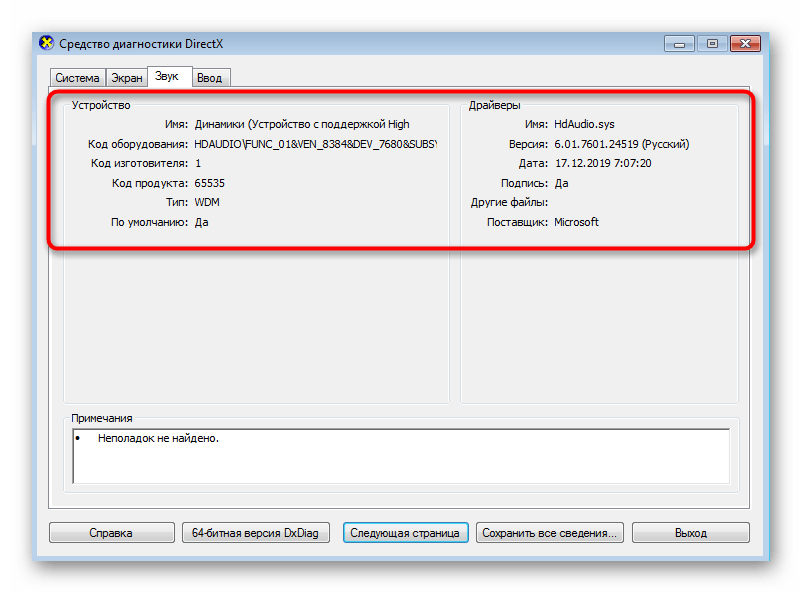 На вкладке «Звук» вы можете определить свою модель звуковой карты, ее уникальный идентификатор и найти связанные драйверы.