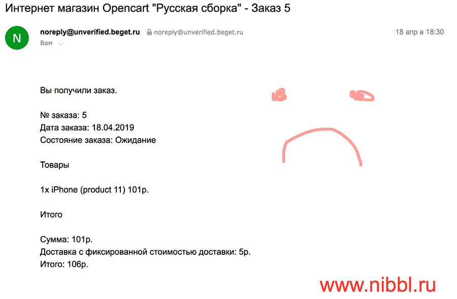 Opencart 3 письмо админу о заказе