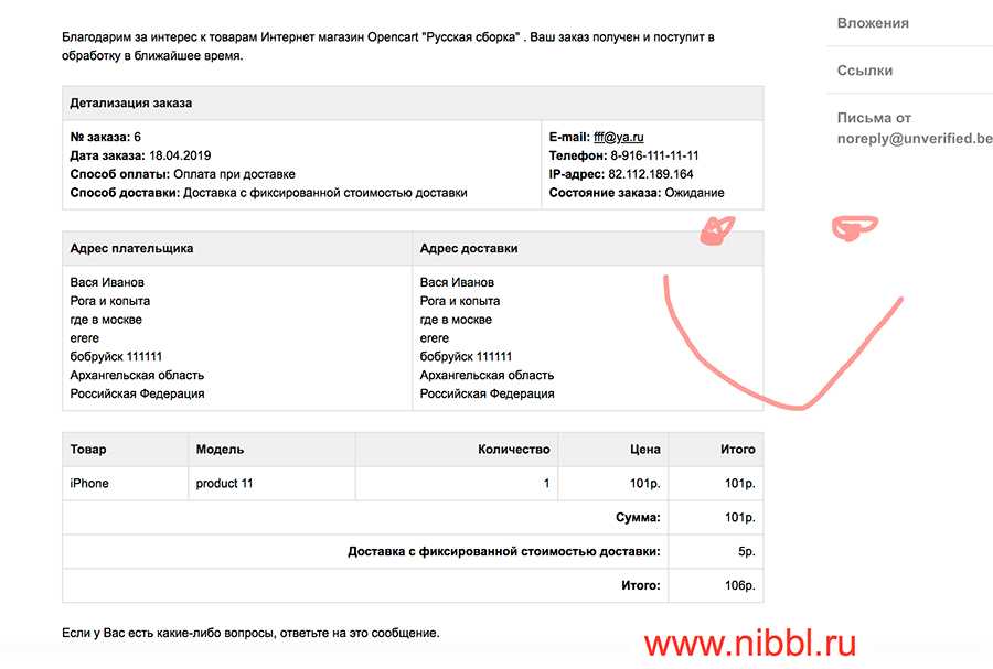 Когда клиент оформляет заказ, то ему при ходит письмо со всей информацией: