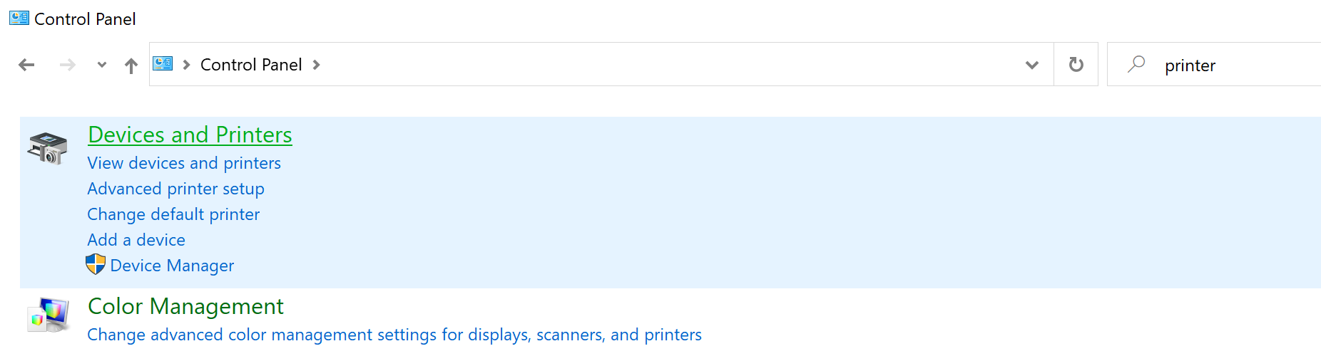 Step 4: From the list of search results, click on the Devices & Printers entry.