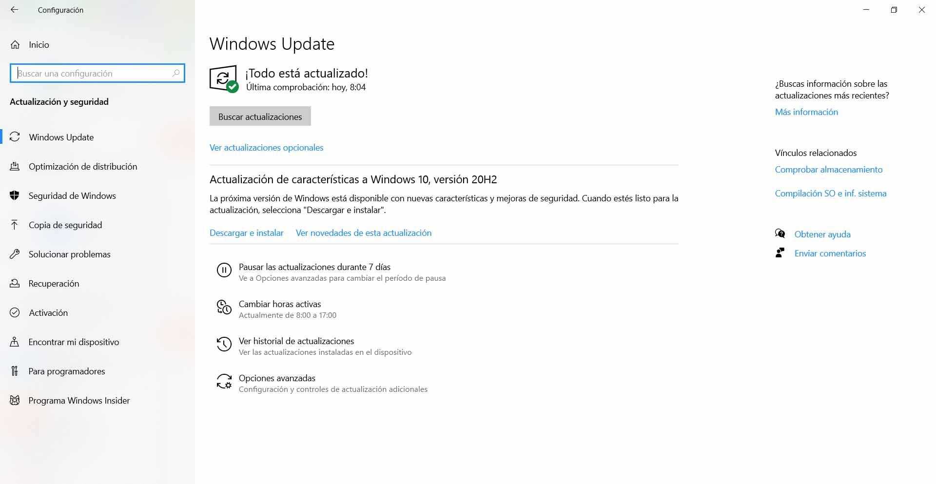 Нам нужно перейти в Пуск, войти в Настройки и перейти в Обновление и безопасность. Там мы увидим, какую версию мы установили и есть ли что-то незавершенное. В случае появления файлов, которые необходимо установить, их необходимо добавить как можно скорее. Это позволит избежать проблем, но также поможет нам повысить безопасность.