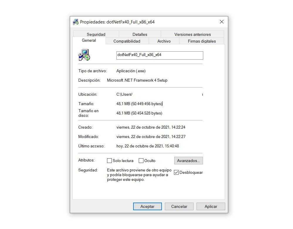 Так же может случиться так, что у нас есть установка файл заблокирован. Это может произойти, если мы скачали файл с Microsoft веб-сайт, но у нас он настроен так, что он заблокирован, и когда мы его открываем, появляется ошибка 0x800c0006.