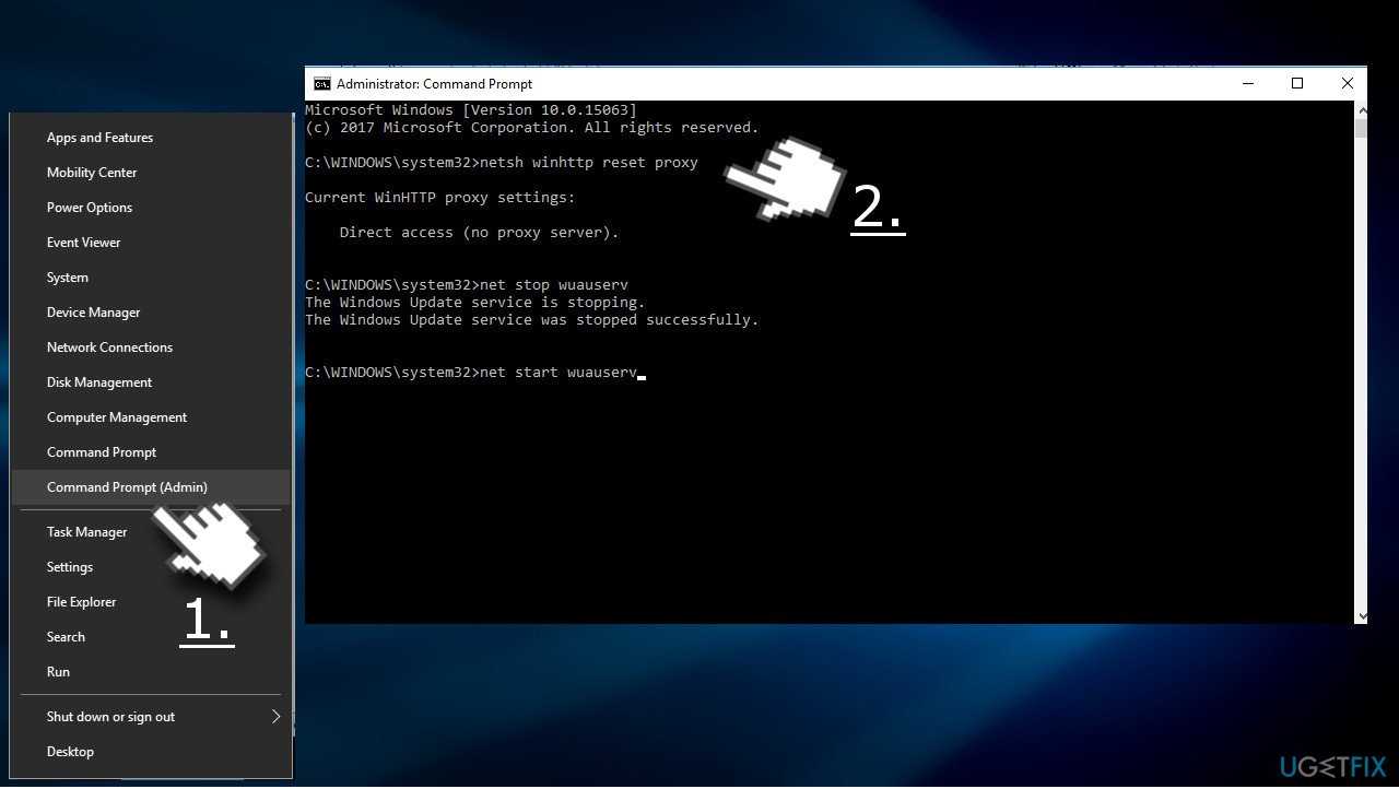 netsh winhttp reset proxynet stop wuauservnet start wuauserv