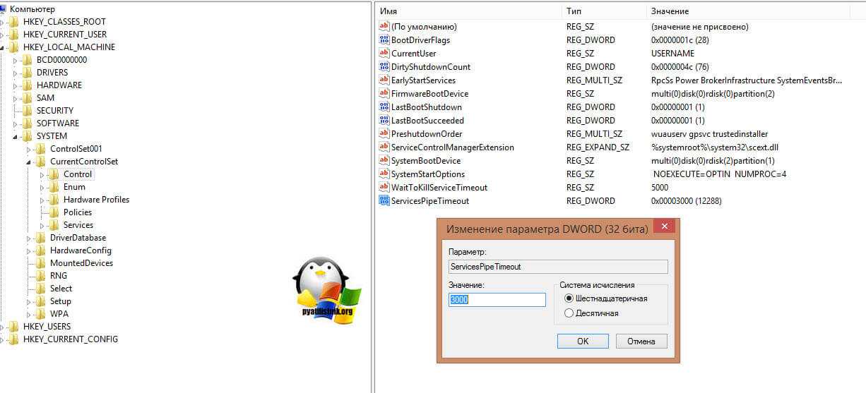Назовите новый ключ ServicesPipeTimeout и сохраните его.