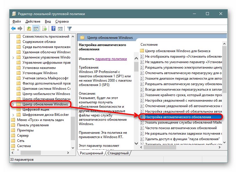 В главном окне последовательно разворачиваем подчеркнутые пункты в области навигации. Последний раздел содержит три параметра. Нужный нам выделен рамкой. Открываем его для редактирования.
