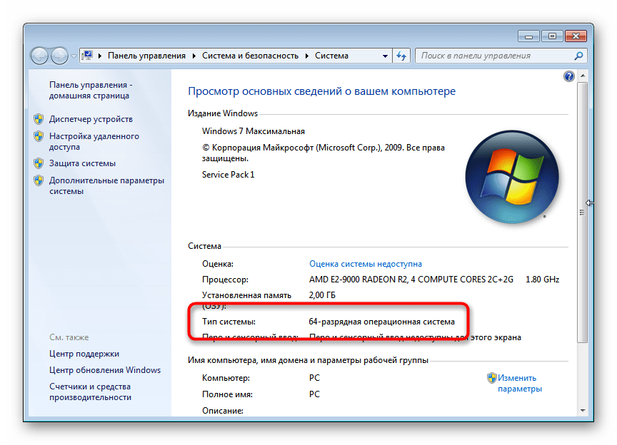 Подробнее: Как определить разрядность операционной системы Windows 7