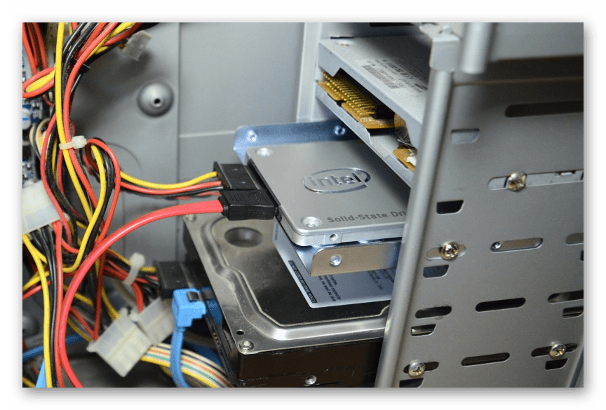 Обладателям ноутбуков, где накопитель, скорее всего, спрятан под крышку (у старых лэптопов для HDD часто можно встретить отдельный отсек и проверить тем самым подключение устройства), этот метод рекомендуется выполнять не в начале, поскольку шанс на то, что отошел провод, меньше, а разбор корпуса гораздо сложнее. Сперва попробуйте выполнить несколько следующих способов.