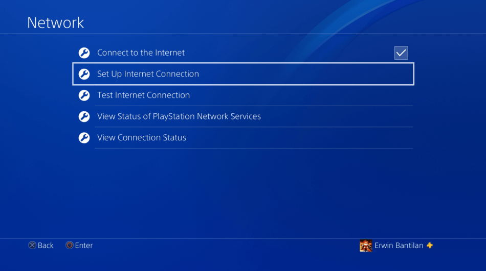After that, just press X to go back to the Network page. Then select Set Up Internet Connection.