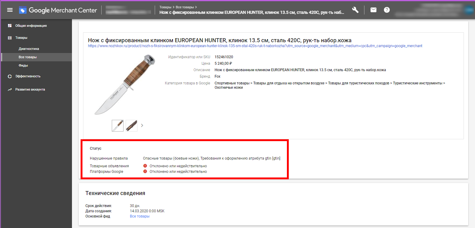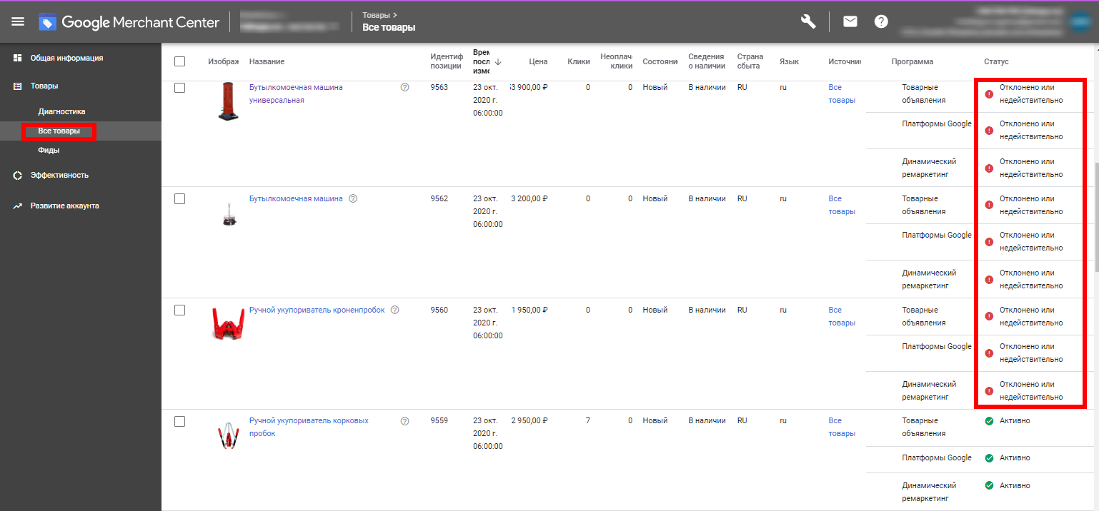 Google может отклонить часть товаров. Но если нарушения серьезные и множественные, система заблокирует и аккаунт GMC. Самые частые проблемы связаны с настройкой сведений о товарах.