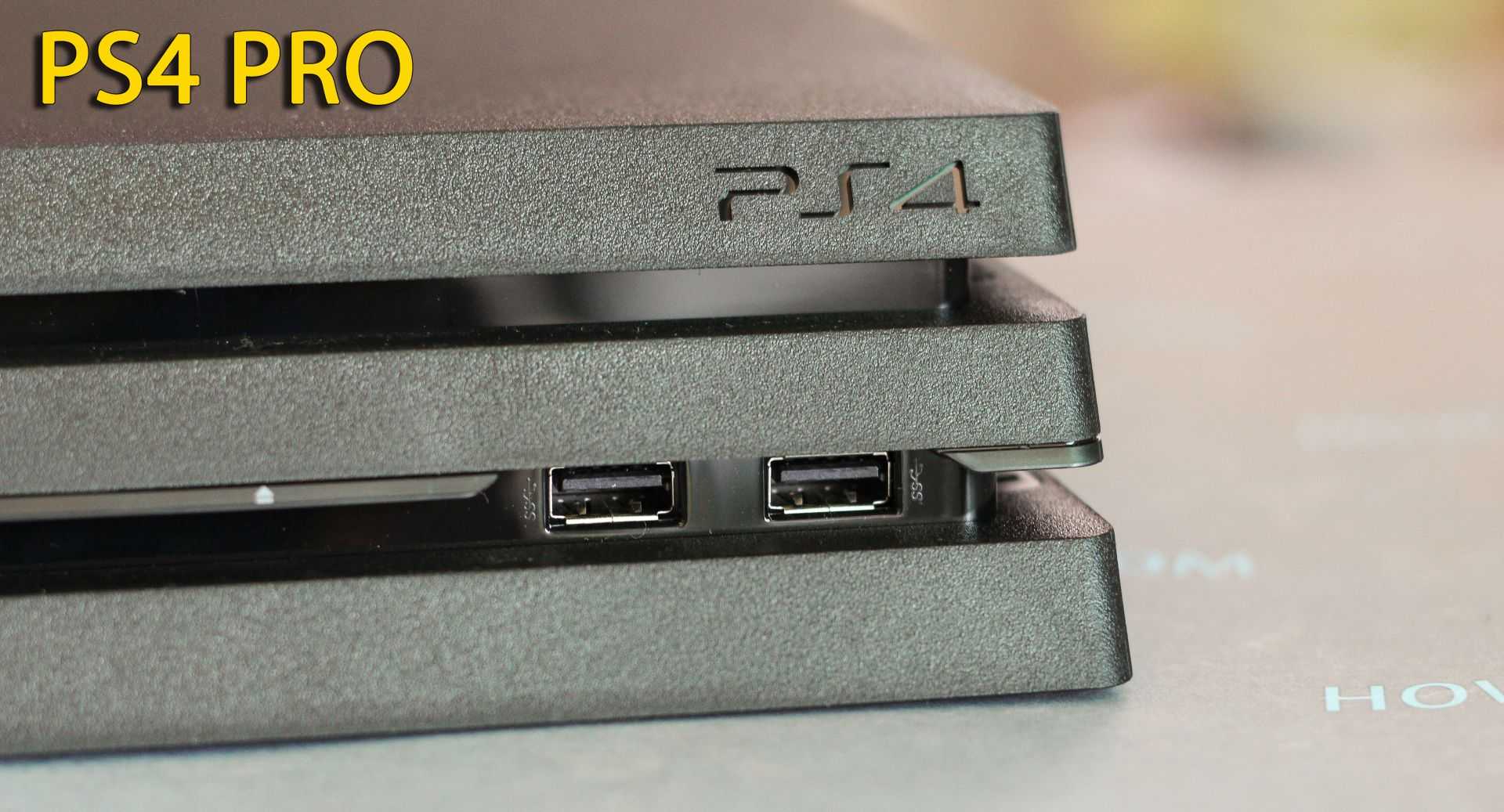 USB порты на версии PS4 Pro расположены также с лицевой стороны корпуса в углублении и один порт с задней стороны корпуса.