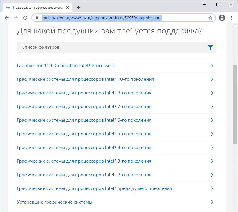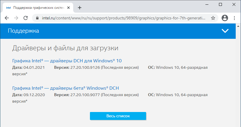 Перед тем как продолжить, рекомендуем скачать и установить последнюю версию ПО для графических систем Intel. Сделать это можно на официальном сайте производителя.