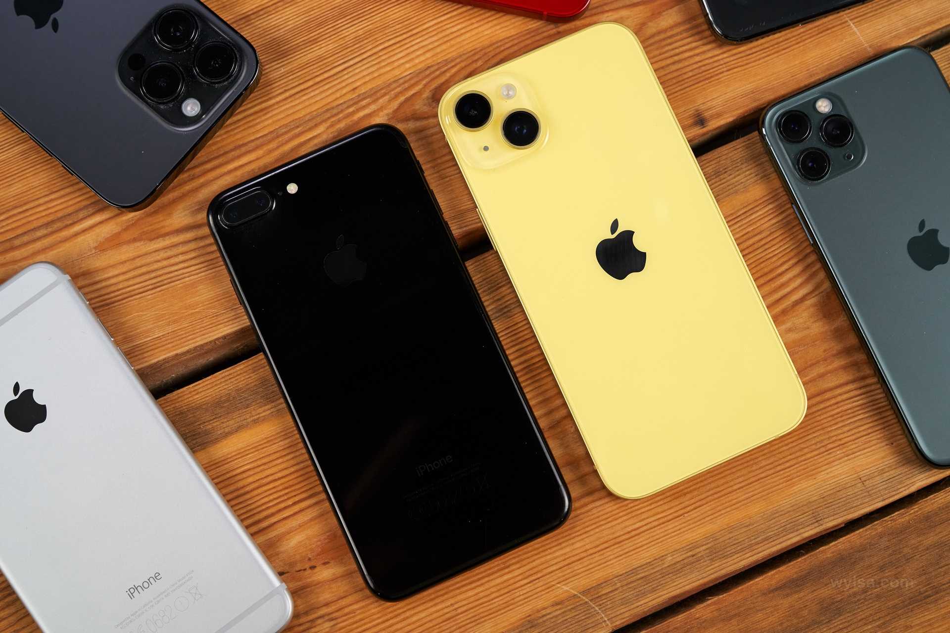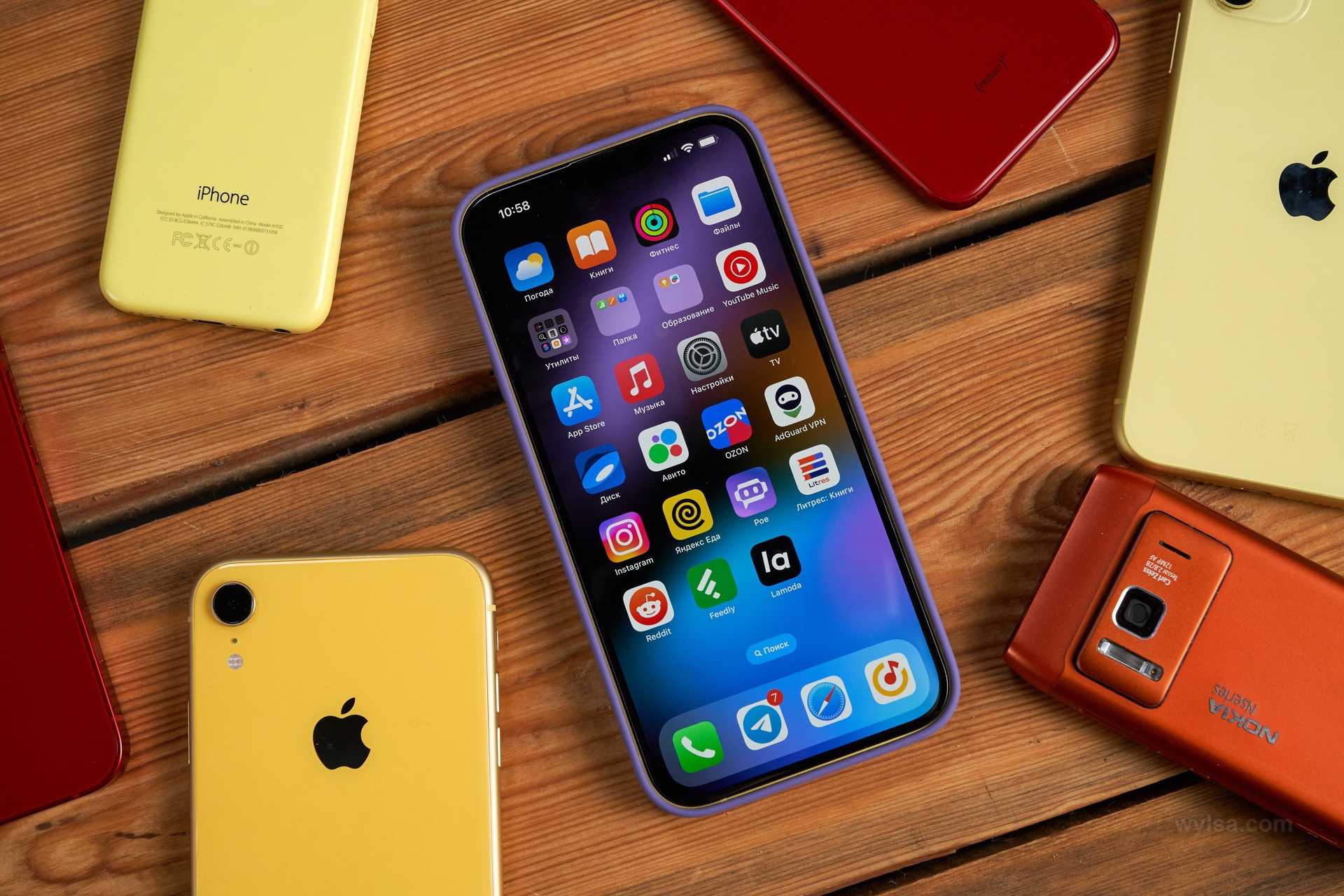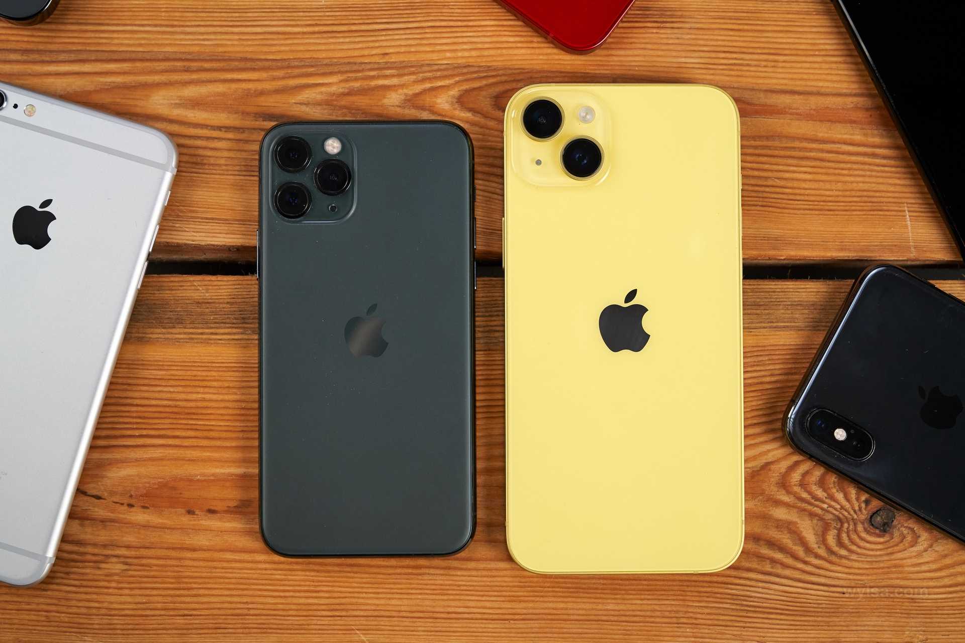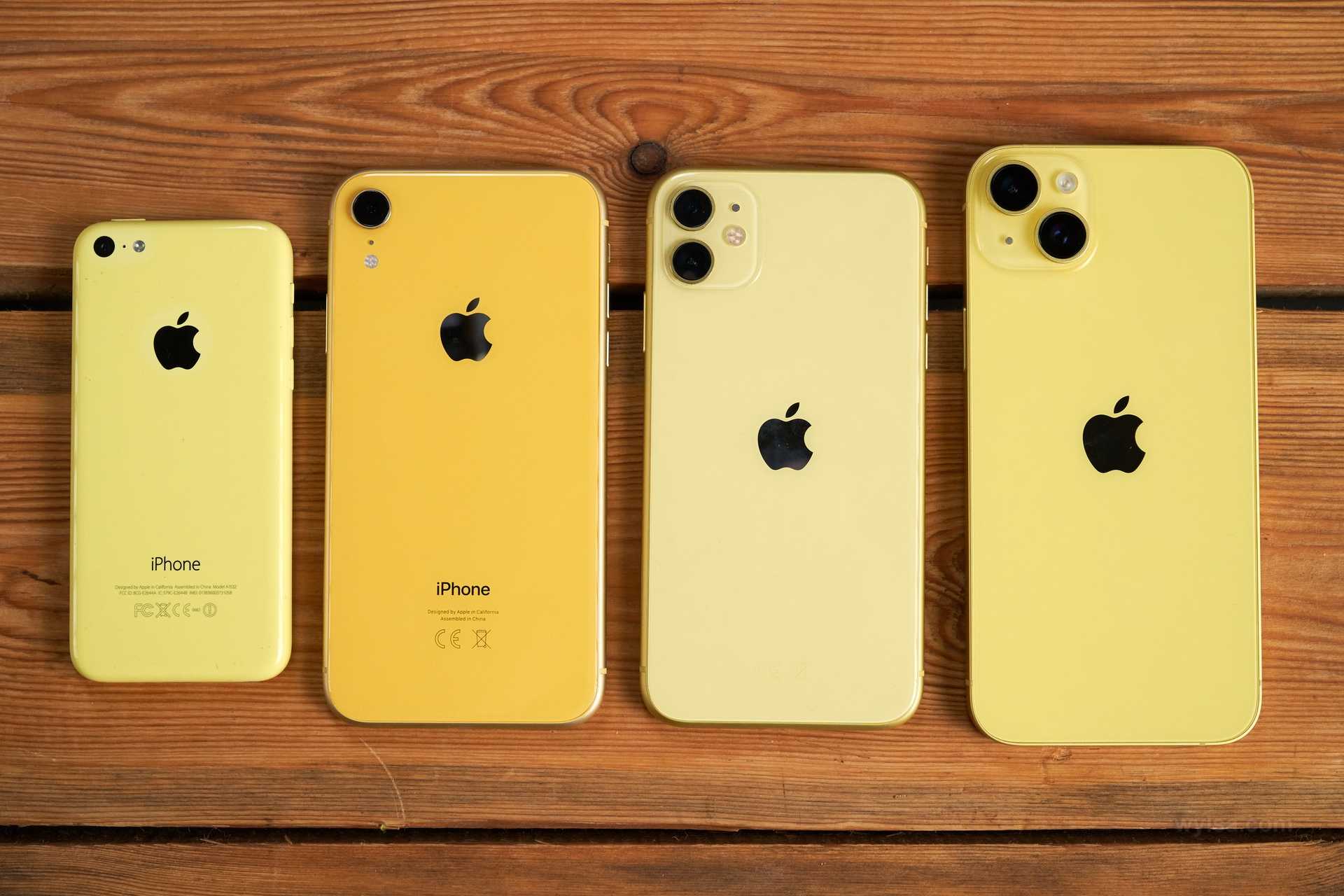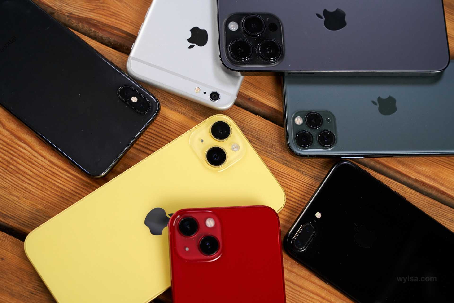 Слева направо: iPhone 5c, iPhone XR, iPhone 11, iPhone 14 Plus. Фото: Александр Побыванец / Wylsacom Media