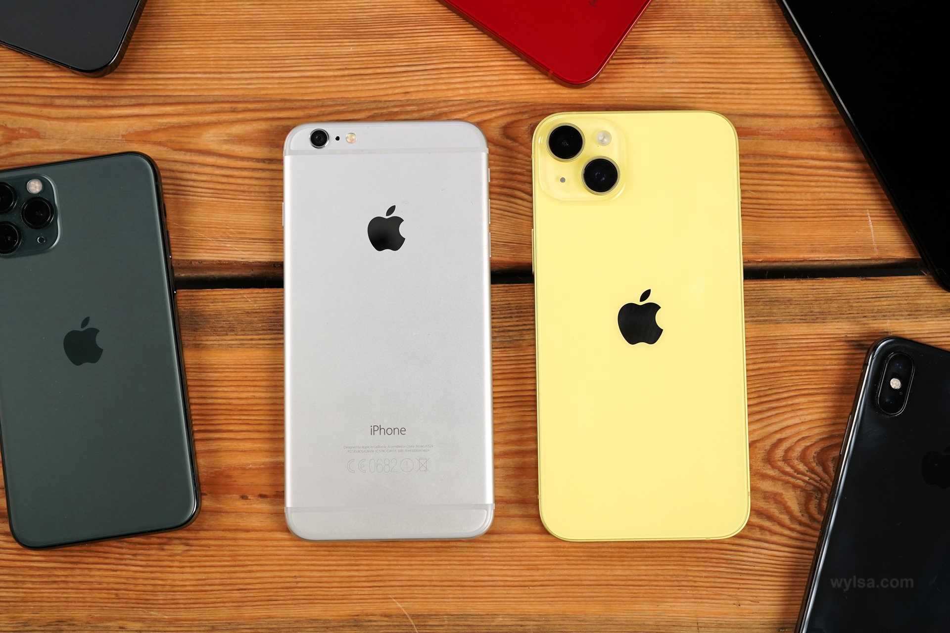Старенький iPhone 6 Plus из 2014 года рядом с iPhone 14 Plus. Фото: Александр Побыванец / Wylsacom Media