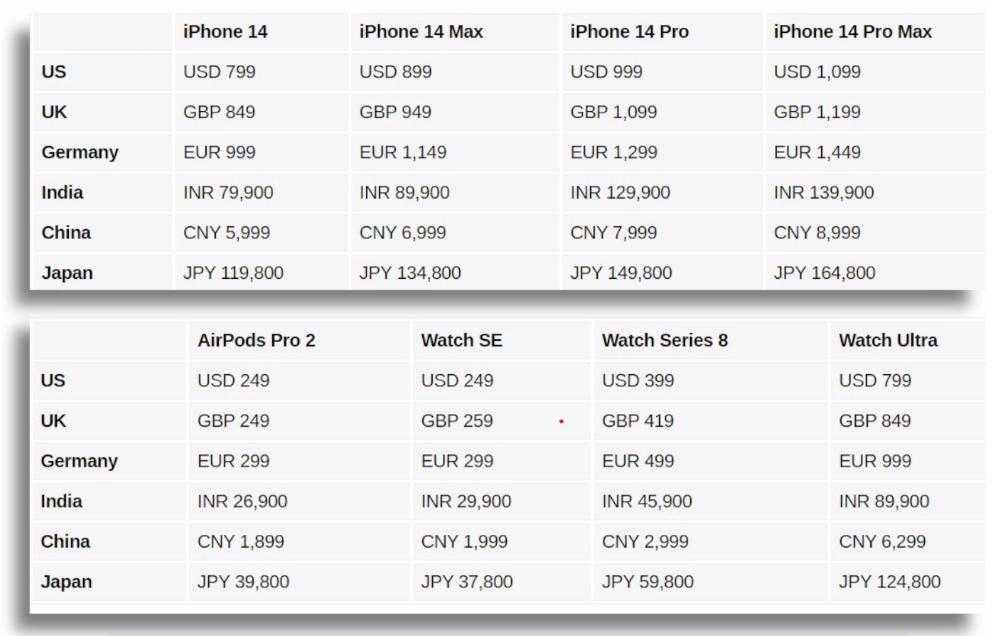 А вот и сравнение цен на новую технику в разных странах.