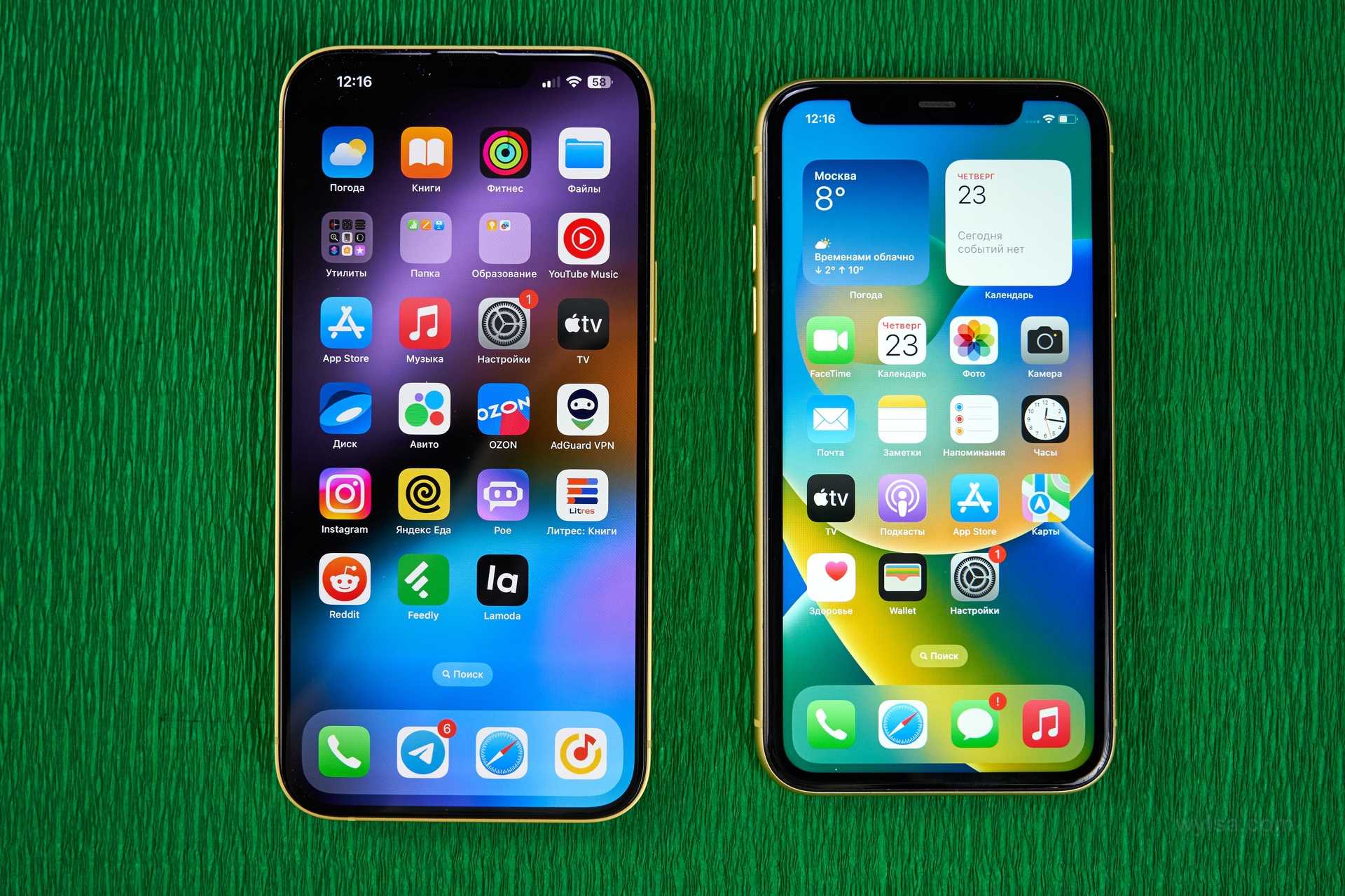 iPhone 14 Plus крупнее, чем iPhone XR, однако и разница в размерах дисплеев существенная. У свежего айфона 6,7 дюйма, а у старого 6,1 дюйма и толстые рамки. Фото: Александр Побыванец / Wylsacom Media