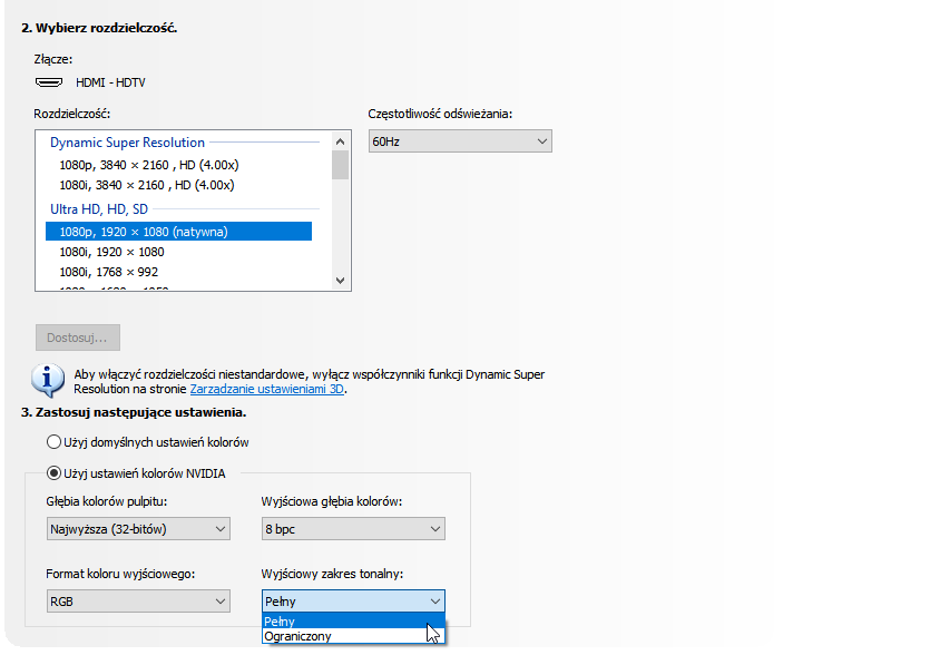 «Используйте настройки цвета NVIDIA», то обратите внимание на поле «Диапазон выходной тональности»
