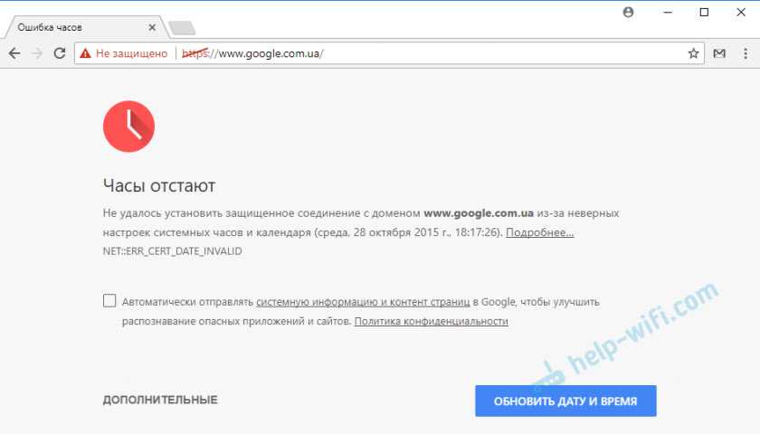 Ошибка: «Часы отстают (err_cert_date_invalid)» в Google Chrome