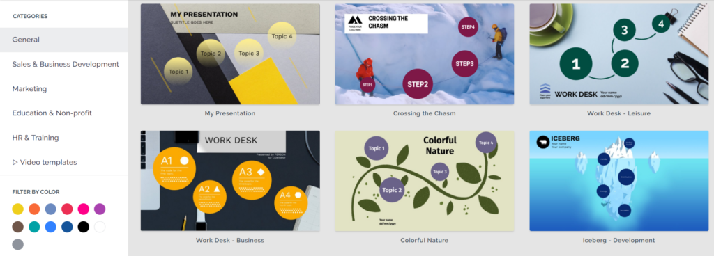 Для новичков у Prezi есть шаблоны презентаций, графиков и диаграмм. Если они не устраивают, то есть возможность скачать понравившийся шаблон из другого источника в формате PPTX и загрузить в Prezi.
