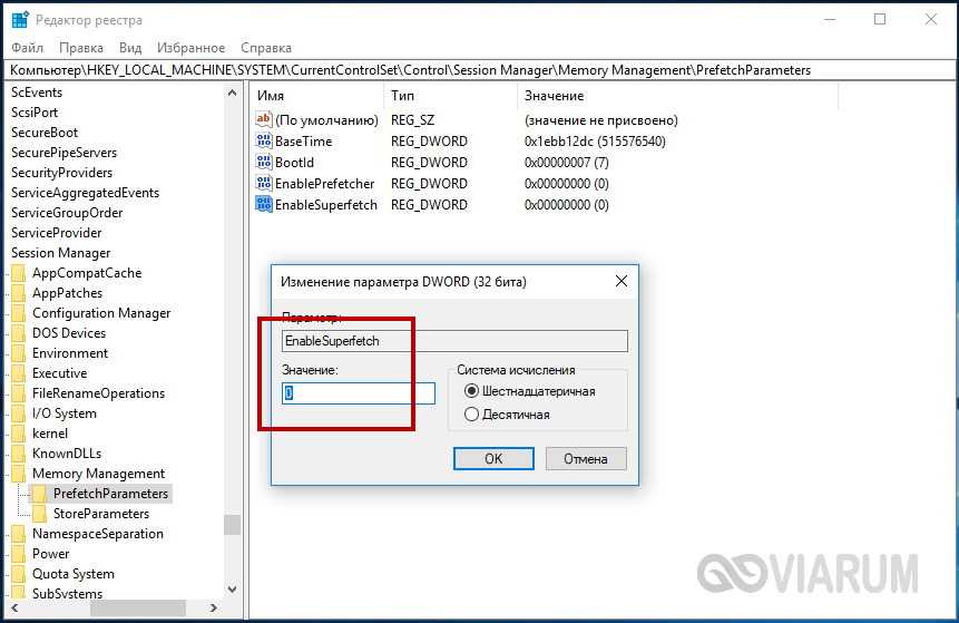 По идее, здесь также всё лучше оставить по умолчанию. Функция никак не влияет на долговечность твердотельных дисков, так как не производит никаких записей. Тем более, что при установке Windows на SSD система автоматически её отключает. Желаете убедиться, что она отключена? Перейдите в редакторе реестра по адресу HKEY_LOCAL_MACHINE/SYSTEM/CurrentControlSet/Control/Session Manager/Memory Management/PrefetchParameters