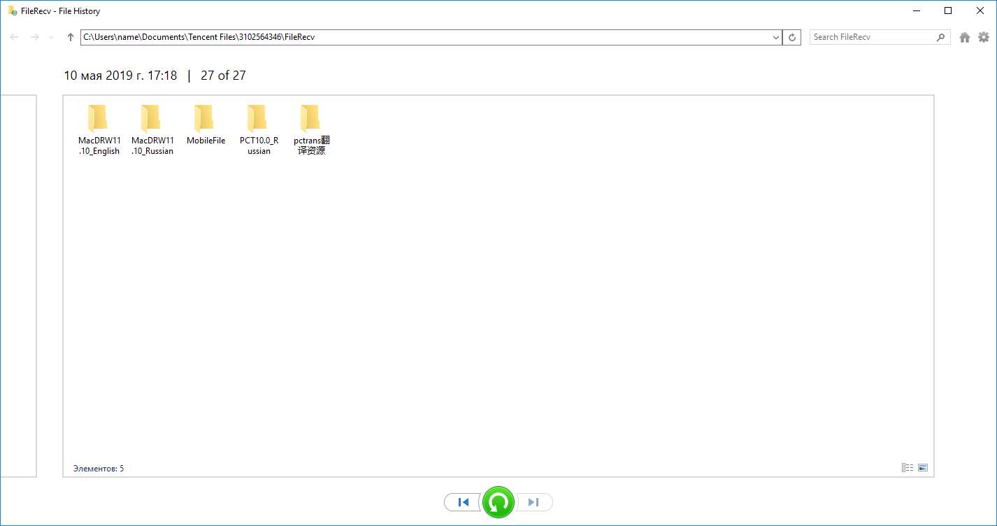 История файла покажет все файлы, содержащиеся в последней резервной копии этой папки.