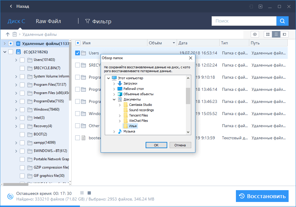 Внимание: не сохраняйте восстановленные файлы обратно на раздел или диск, где вы их потеряли! Вы можете перенести их туда уже после восстановления, но при восстановлении непосредственно на тот же диск, появляется риск перезаписи файла