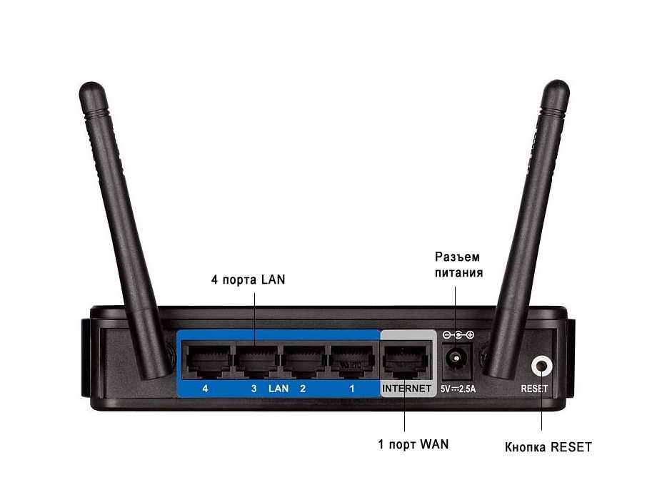 - Первым делом соединим ваш компьютер и роутер кабелем Ethernet, входящим в комплект поставки. Один конец провода воткнем в разъем сетевой карты ПК, другой – в один из четырех портов LAN на задней панели (порты выделены синим цветом).