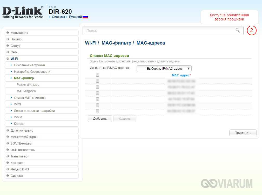 Другим способом обезопасить вашу Wi-Fi сеть от нежелательных гостей является задание списка доверенных MAC-адресов. Делаете это в разделе Wi-Fi – MAC-фильтр