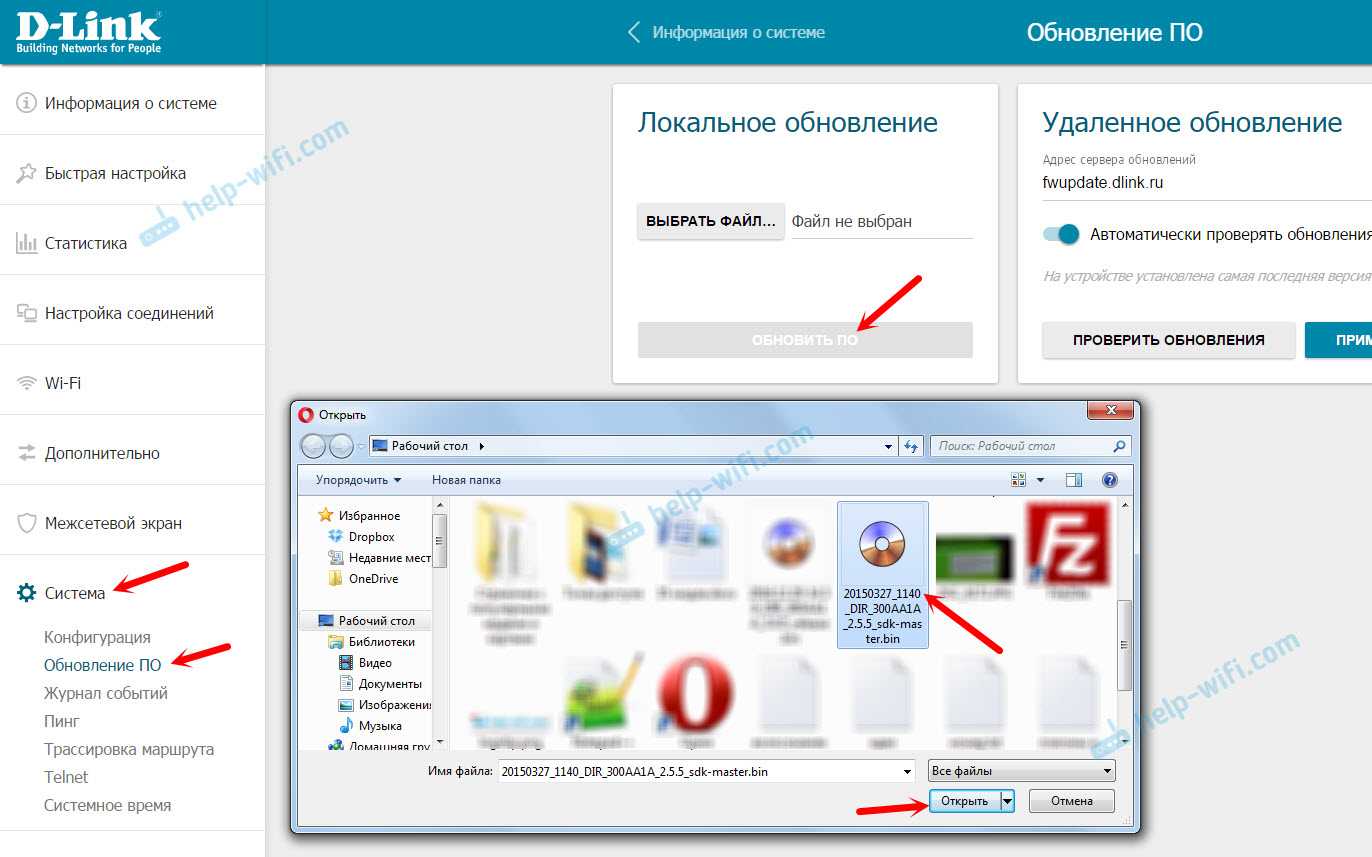 - Найдите у себя на компьютере скачанную официальную прошивку от D-link. После этого нажмите «Upload».