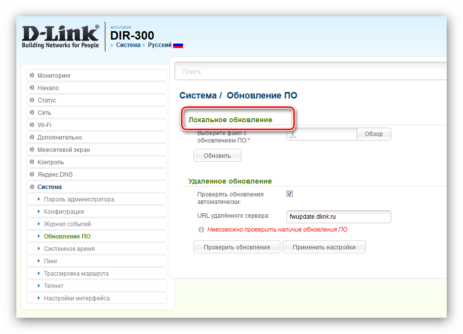- Откройте веб-интерфейс маршрутизатора и раскройте вкладку «Система», в которой выберите вариант «Обновление ПО».