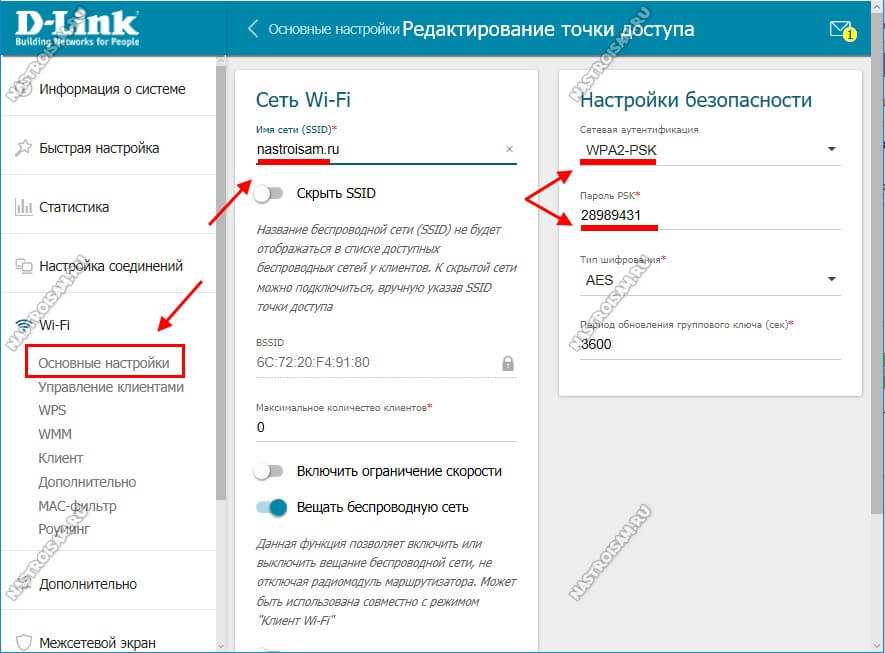 Все базовые параметры сети Вай-Фай теперь наконец-то свели на одну страничку, а не растянули на две, как было на предыдущих прошивках. Открываем раздел Wi-Fi -> Основные параметры:
